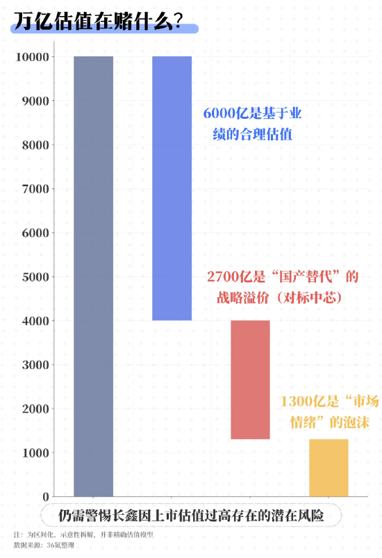 站在资本市场视角,长鑫的稀缺性正在被快速定价。考虑其战略地位,市场普遍预期上市后公司估值有望向万亿靠拢。但若回归基本面,以2025年550亿元营收、12倍行业平均PS计算,对应估值中枢约6000亿元;若参考中芯国际约15倍PS,叠加战略溢价后,其合理估值上限约9000亿元。