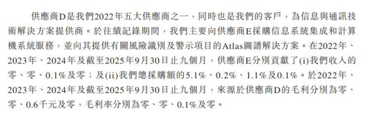 再如,在招股书“重叠的客户和供应商”处,海致科技表示,供应商D为公司2022年五大供应商之一,同时也是公司的客户。理论上,该段应当分析的是海致科技与供应商D的采购和销售情况,但该段落却穿插披露了与供应商E的购销情况。