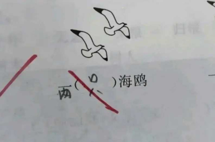 可以看到,图片中是两只海鸥,但题目却是“一海鸥”。