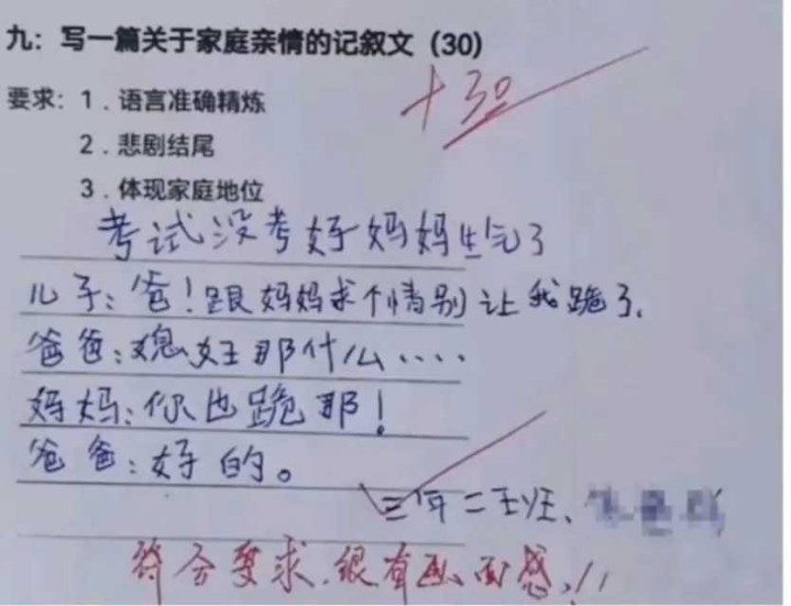 老师这“0分”给的,估计是又“无语”又“无奈”吧!