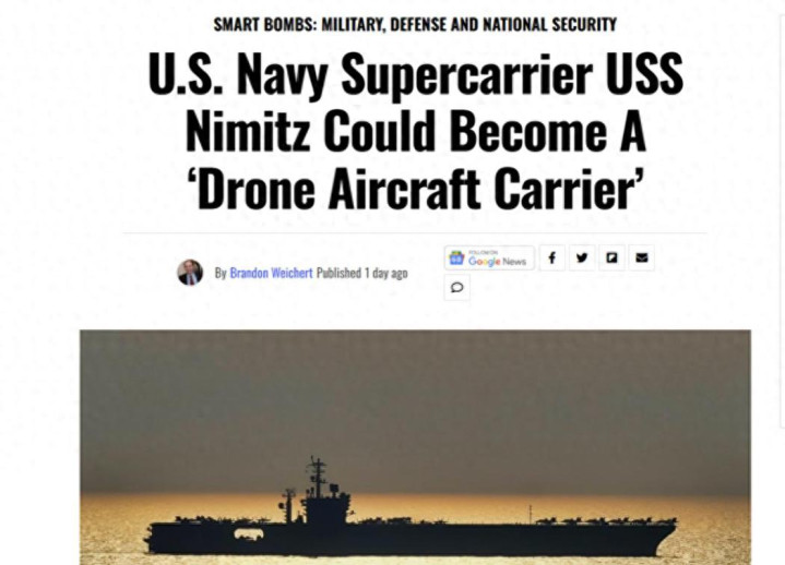 面对这艘从戎向上半个世纪、排水量达10万吨的巨无霸航母,好意思国1945网站最近抛出了一个斗胆的念念法:学学中国076型无东谈主机母舰,把“尼米兹”号改形成无东谈主机航母。这念念法靠谱吗?