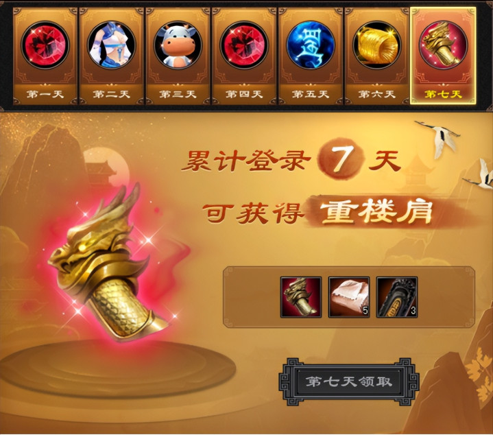 砍掉多量冗余的养成系统,当今登个游戏累计签到7天,就能免费领取顶配神器重楼肩。