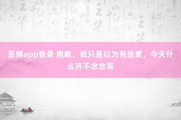 亚搏app登录 抱歉,我只是以为有些累,今天什么齐不念念写