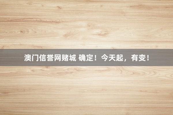 澳门信誉网赌城 确定!今天起,有变!