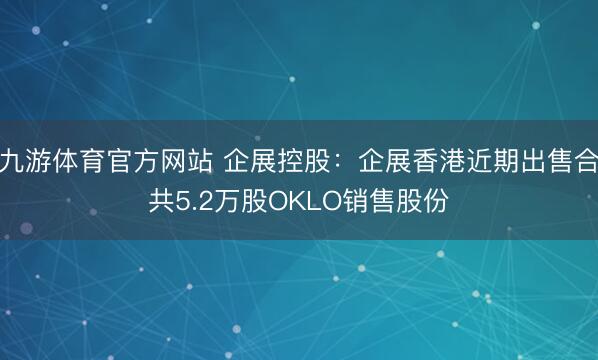 九游体育官网 企展控股:企展香港近期出售合共5.2万股OKLO销售股份
