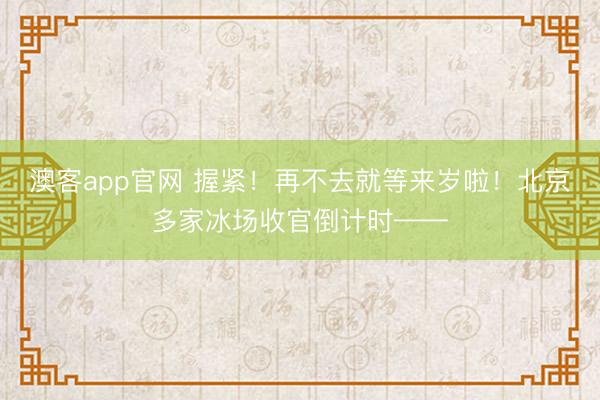 澳客app官网 握紧!再不去就等来岁啦!北京多家冰场收官倒计时——