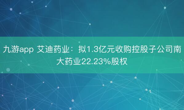 九游app 艾迪药业:拟1.3亿元收购控股子公司南大药业22.23%股权