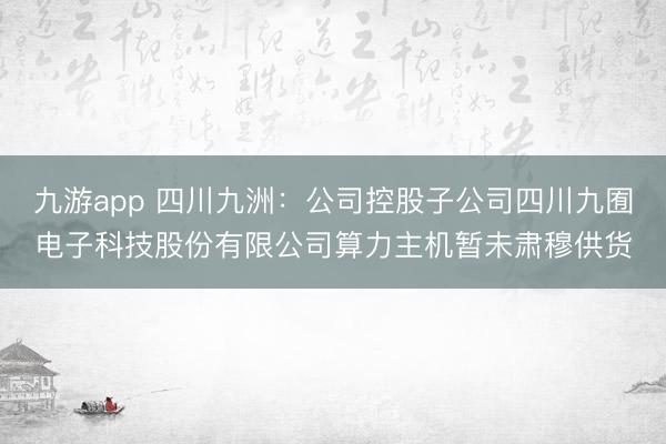 九游app 四川九洲:公司控股子公司四川九囿电子科技股份有限公司算力主机暂未肃穆供货