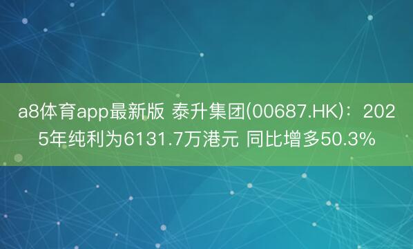 a8体育app最新版 泰升集团(00687.HK):2025年纯利为6131.7万港元 同比增多50.3%