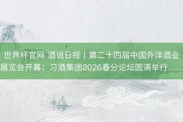 世界杯官网 酒说日报丨第二十四届中国外洋酒业展览会开幕;习酒集团2026春分论坛圆满举行……