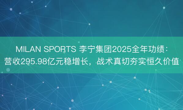 MILAN SPORTS 李宁集团2025全年功绩:营收295.98亿元稳增长,战术真切夯实恒久价值