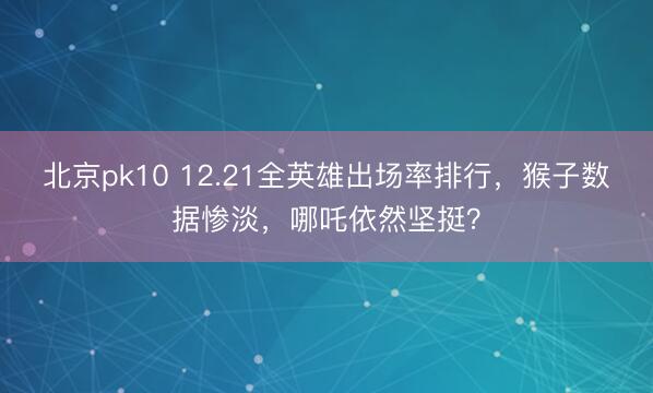 北京pk10 12.21全英雄出场率排行,猴子数据惨淡,哪吒依然坚挺?