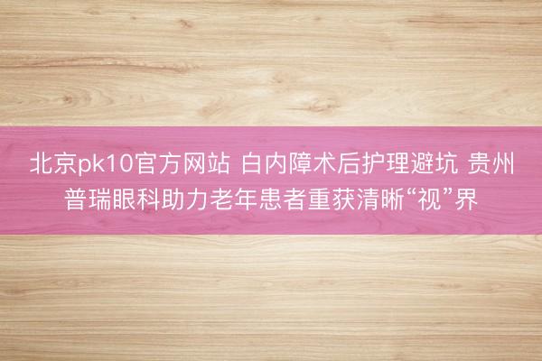 北京pk10官方网站 白内障术后护理避坑 贵州普瑞眼科助力老年患者重获清晰“视”界