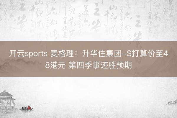 开云app 麦格理:升华住集团-S盘算价至48港元 第四季事迹胜预期