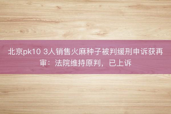 北京pk10 3人销售火麻种子被判缓刑申诉获再审:法院维持原判,已上诉