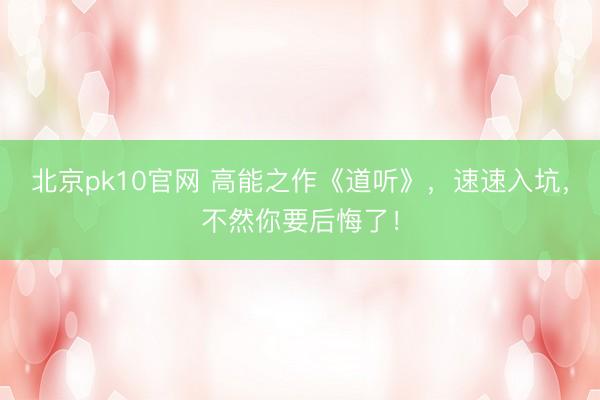 北京pk10官网 高能之作《道听》,速速入坑,不然你要后悔了!