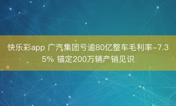 快乐彩app 广汽集团亏逾80亿整车毛利率-7.35% 锚定200万辆产销见识