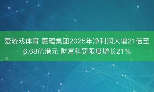 爱游戏体育 惠理集团2025年净利润大增21倍至6.68亿港元 财富科罚限度增长21%