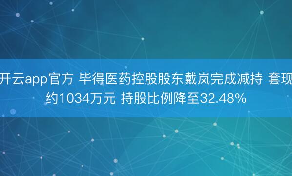 开云app官方 毕得医药控股股东戴岚完成减持 套现约1034万元 持股比例降至32.48%