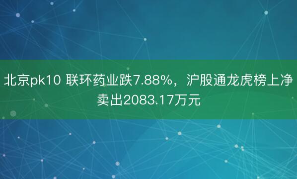 北京pk10 联环药业跌7.88%,沪股通龙虎榜上净卖出2083.17万元