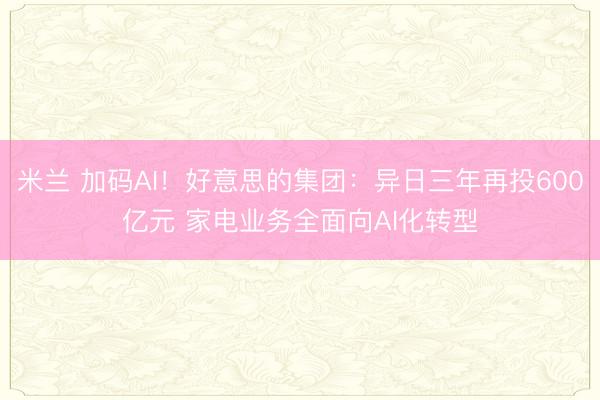 米兰 加码AI!好意思的集团:异日三年再投600亿元 家电业务全面向AI化转型