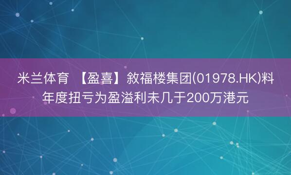 米兰体育 【盈喜】敘福楼集团(01978.HK)料年度扭亏为盈溢利未几于200万港元
