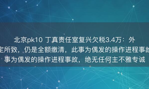 北京pk10 丁真责任室复兴欠税3.4万:外聘财务东谈主职责任核定所致,仍是全额缴清,此事为偶发的操作进程事故,绝无任何主不雅专诚