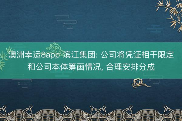 澳洲幸运8app 滨江集团: 公司将凭证相干限定和公司本体筹画情况, 合理安排分成