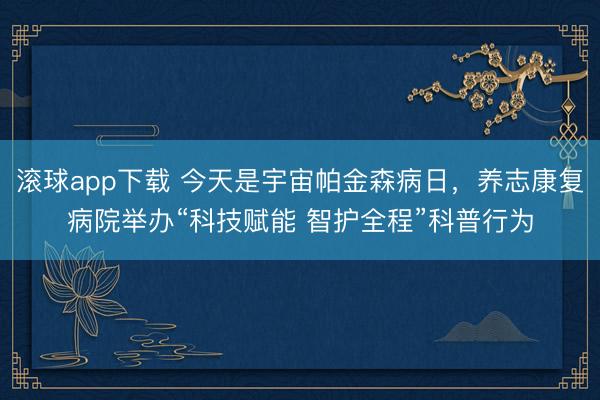 滚球app下载 今天是宇宙帕金森病日,养志康复病院举办“科技赋能 智护全程”科普行为
