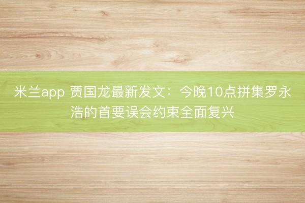 米兰app 贾国龙最新发文:今晚10点拼集罗永浩的首要误会约束全面复兴