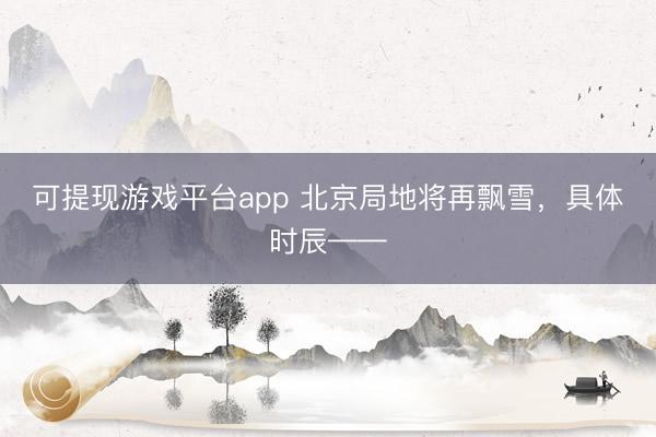 可提现游戏平台app 北京局地将再飘雪,具体时辰——