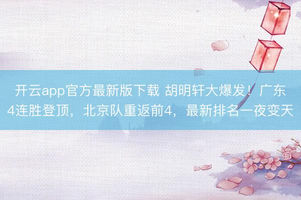 开云app官方最新版下载 胡明轩大爆发!广东4连胜登顶,北京队重返前4,最新排名一夜变天
