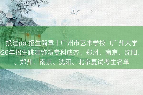 投注pp 招生简章丨广州市艺术学校(广州大学从属艺术学校)2026年招生跳舞饰演专科成齐、郑州、南京、沈阳、北京复试考生名单