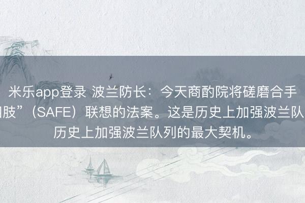 米乐app登录 波兰防长:今天商酌院将磋磨合手行“欧洲安全四肢”(SAFE)联想的法案。这是历史上加强波兰队列的最大契机。