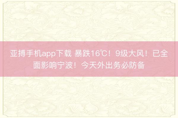 亚搏手机app下载 暴跌16℃!9级大风!已全面影响宁波!今天外出务必防备