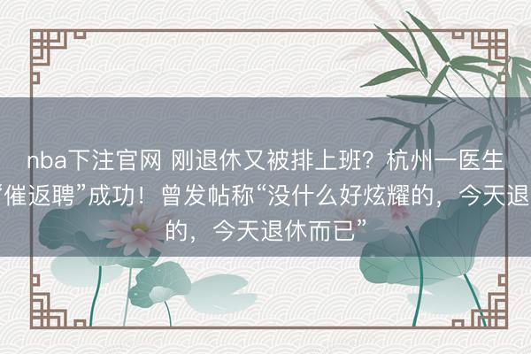 nba下注官网 刚退休又被排上班?杭州一医生被全网“催返聘”成功!曾发帖称“没什么好炫耀的,今天退休而已”