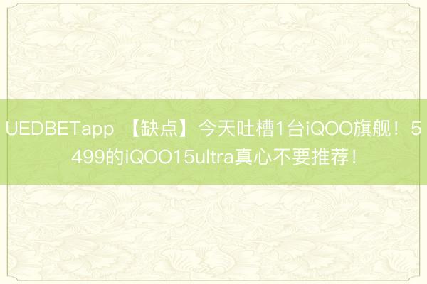 UEDBETapp 【缺点】今天吐槽1台iQOO旗舰!5499的iQOO15ultra真心不要推荐!
