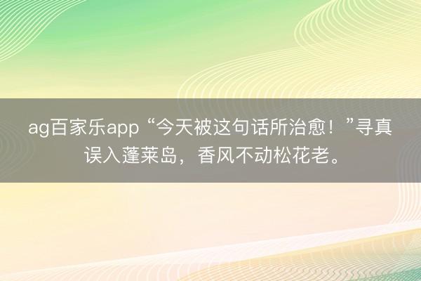ag百家乐app “今天被这句话所治愈!”寻真误入蓬莱岛,香风不动松花老。