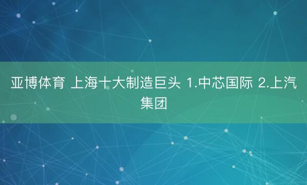 亚博体育 上海十大制造巨头 1.中芯国际 2.上汽集团