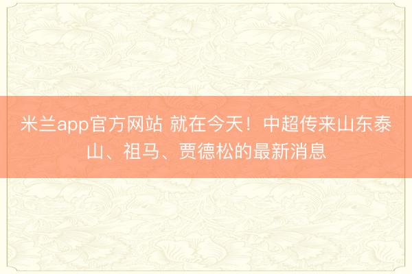 米兰app官方网站 就在今天!中超传来山东泰山、祖马、贾德松的最新消息