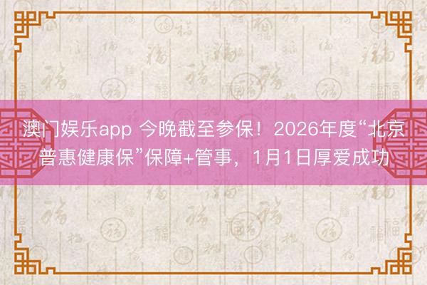 澳门娱乐app 今晚截至参保!2026年度“北京普惠健康保”保障+管事,1月1日厚爱成功