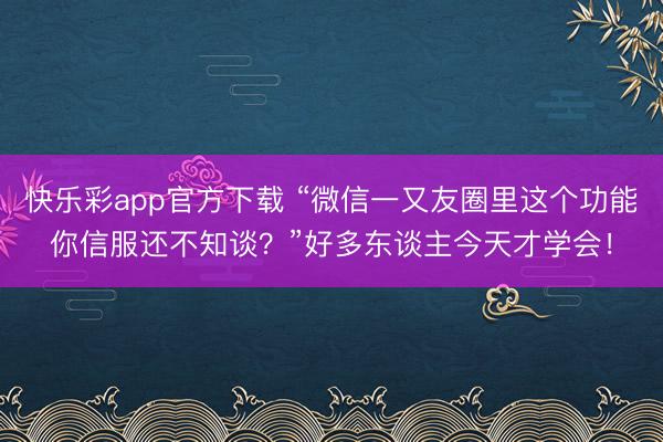 快乐彩app官方下载 “微信一又友圈里这个功能你信服还不知谈?”好多东谈主今天才学会!