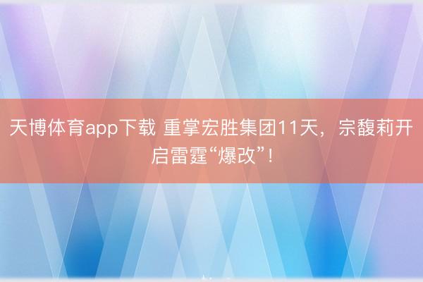天博体育app下载 重掌宏胜集团11天,宗馥莉开启雷霆“爆改”!