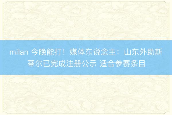 milan 今晚能打!媒体东说念主:山东外助斯蒂尔已完成注册公示 适合参赛条目