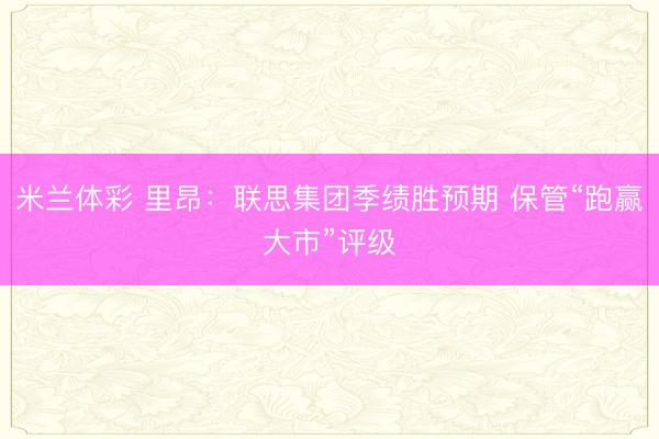 米兰体彩 里昂:联思集团季绩胜预期 保管“跑赢大市”评级