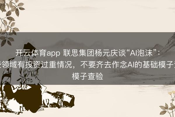 开云体育app 联思集团杨元庆谈“AI泡沫”:某些领域有投资过重情况,不要齐去作念AI的基础模子查验