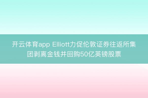 开云体育app Elliott力促伦敦证券往返所集团剥离金钱并回购50亿英镑股票