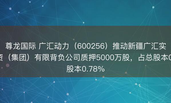 尊龙国际 广汇动力(600256)推动新疆广汇实业投资(集团)有限背负公司质押5000万股,占总股本0.78%