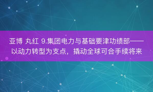 亚博 丸红 9.集团电力与基础要津功绩部——以动力转型为支点,撬动全球可合手续将来