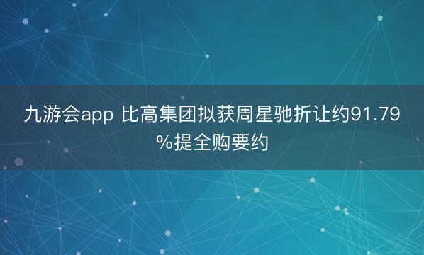 九游会app 比高集团拟获周星驰折让约91.79%提全购要约